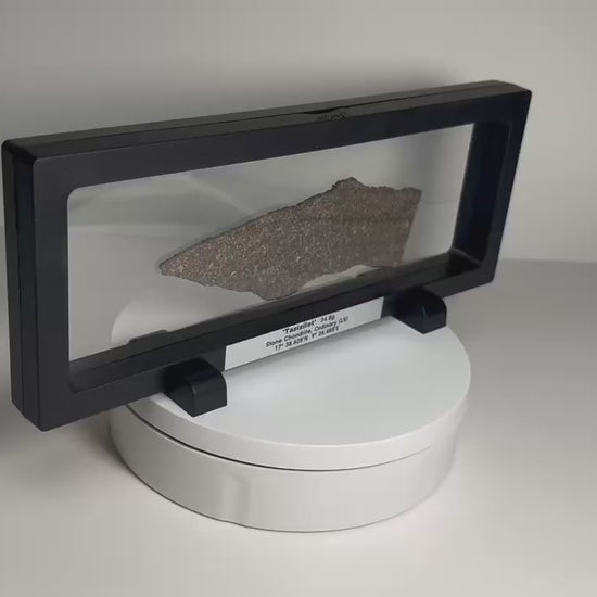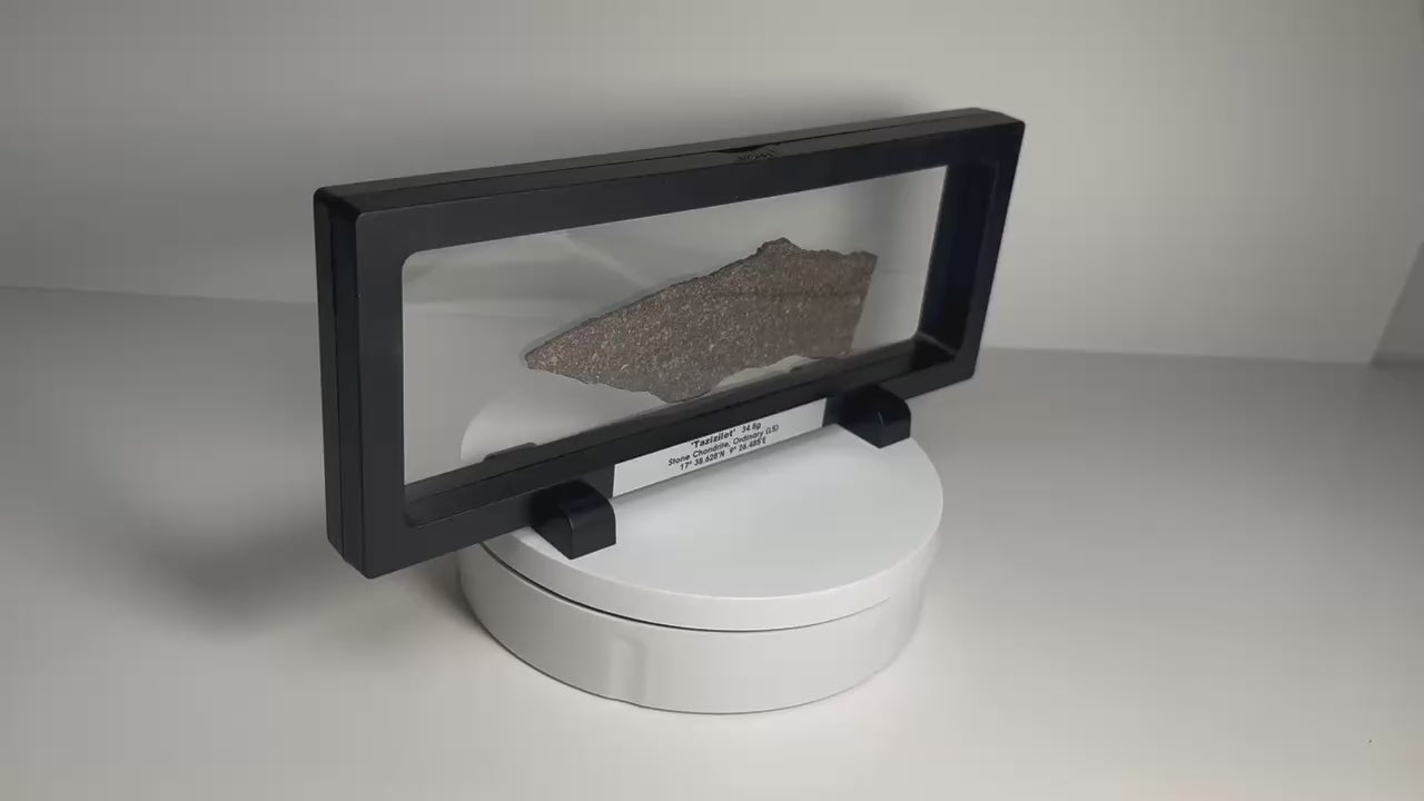 Item Details: Specimen NT0014 is approx. 5" in length, weighing a total of 34.8 grams. Included is a floating 3D membrane display case, beautifully displaying your very own piece of the cosmos! Please contact me with any questions regarding this acquisition, or see the abstract from the official certifying source (Lunar and Planetary Institute) here: https://www.lpi.usra.edu/meteor/docs/mb103.pdf